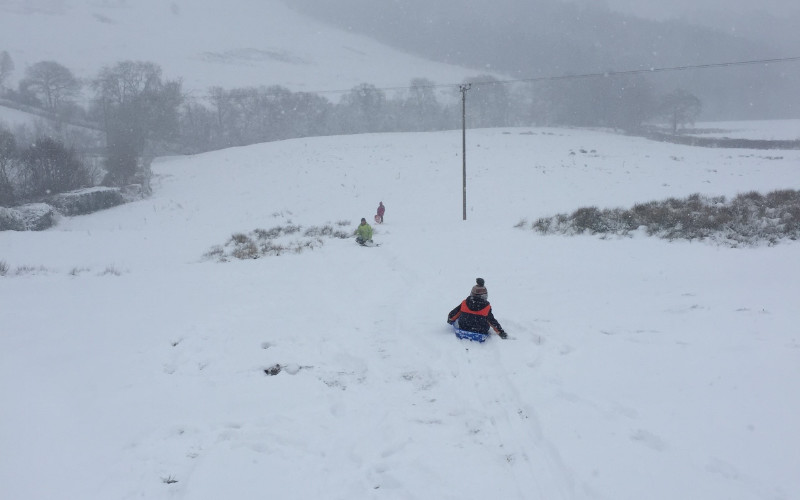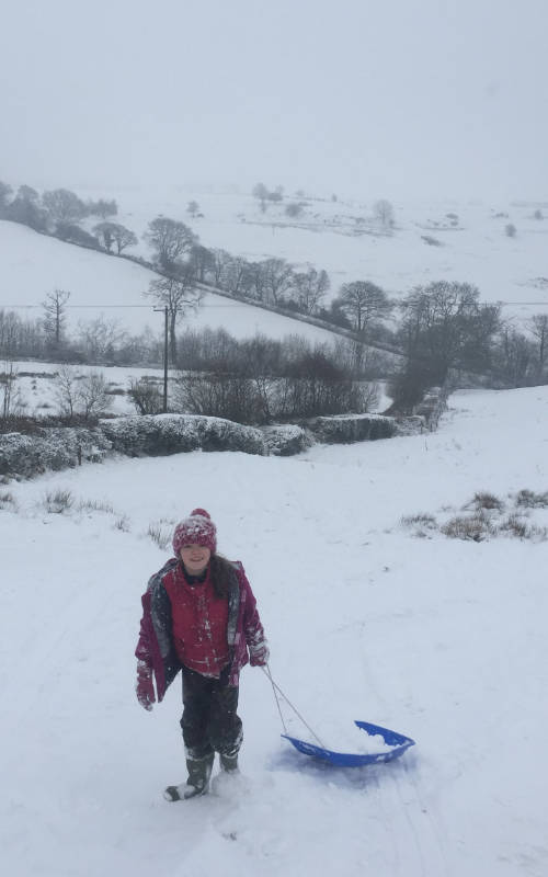 So, it snowed, and snowed and snowed…the groundworks have literary frozen to a halt – March has not been a productive as we first hoped. Kids’ schools are closed so what can we do? Of course, we make the most of the Blackdown Hills and go sledging. The kids on their brightly coloured plastic sleds bought after the last heavy snow and seemingly destined never to be used again until today. For the adults? Animal feed bags filled with straw. It is great fun, though climbing back up the hill is a hard slog.